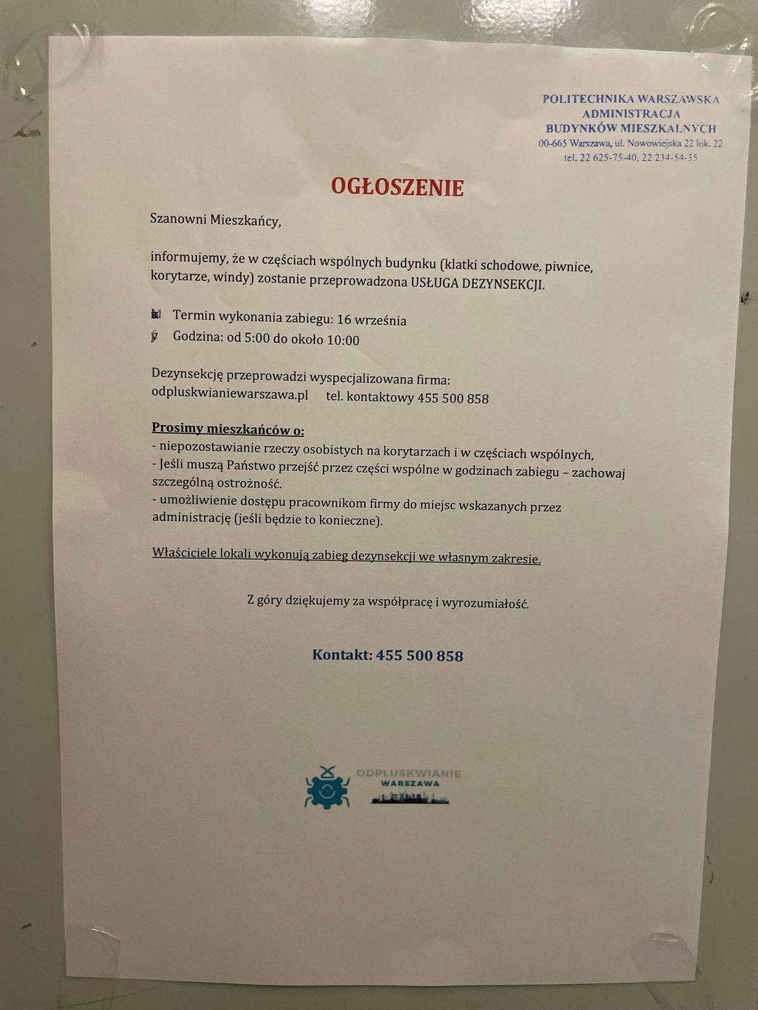 OdpluskwianieWarszawa to profesjonalna ochrona przed szkodnikami na terenie Warszawy i okolic. Specjalizujemy się w skutecznym zwalczaniu pluskiew, prusaków, karaluchów oraz deratyzacji. Oferujemy kompleksowe usługi dezynsekcji, dezynfekcji i deratyzacji, zapewniając bezpieczeństwo i spokój w Twoim domu lub firmie. Wybierając nas, zyskujesz gwarancję skuteczności i szybką reakcję na problem. Stosujemy sprawdzone metody i preparaty, dbając o Twoje zdrowie i środowisko. Zaufało nam wielu klientów ceniących sobie profesjonalizm i dyskrecję. Dziękujemy za zaufanie i zapraszamy do kontaktu w celu omówienia szczegółów i umówienia wizyty!